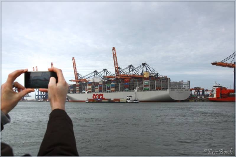 Je maakt een indrukwekkende tocht door één van de grootste zee-havens ter wereld, waarbij je kort langszij vaart langs enorme containerkranen en de grootste schepen ter wereld.