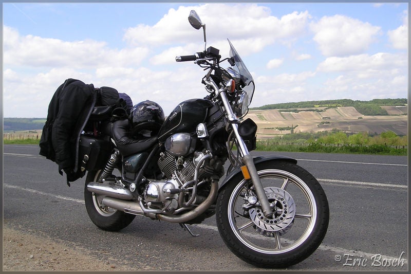 Van 2002 t/m 2011 had ik deze Yamaha XV 750 Virago. De eerste jaren zijn er aardig wat km's mee gemaakt. Mijn 1e motorreis was in 2003. Met een groepje vrienden vanuit Doetinchem naar Dieppe (B) en vervolgens langs de kust tot aan Sant-Maloù (F), en via Parijs weer terug. Mijn zoon, toen 12 jr., zat achterop.